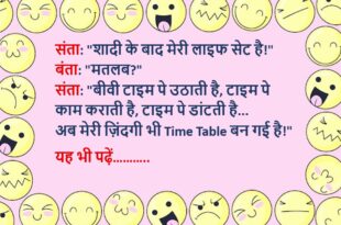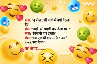 संता: भगवान सबको इतना पैसा क्यों नहीं देता कि कोई गरीब ना रहे? बंता: क्योंकि फिर अमीर कौन रहेगा? तू?😊😊😊😊😊 ******************************************* पप्पू: पापा, आप मुझे स्मार्टफोन कब दिलाओगे? पापा: बेटा, जब तू स्मार्ट हो जाएगा।😊😊😊😊😊 ******************************************* पति: डॉक्टर साहब, मुझे भूलने की बीमारी हो गई है। डॉक्टर: कब से? पति: कब से क्या?😊😊😊😊😊 ******************************************* पत्नी: तुम मुझे कहाँ-कहाँ घुमाओगे शादी …