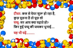 बंटू- जैसे-जैसे उम्र बढ़ती है, दिन-प्रतिदिन इंसान रईस बनता जाता है…! घंटु- वो कैसे…? बंटू- बूढ़े होने पर चांदी बालों में, सोना दांतों में, मोती आखों में शुगर खून में और महंगे पत्थर किडनी में पाए जाने लगते हैं…!😆🤣🤣🤣🤣😝😝😝 ************************************************************************************ एक हैंडसम लड़का क्लास में आया। और सारी लड़किया देखते ही दीवानी हो गईं। लेकिन फिर लड़के ने आते ही …