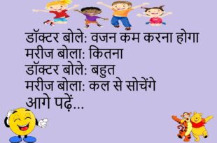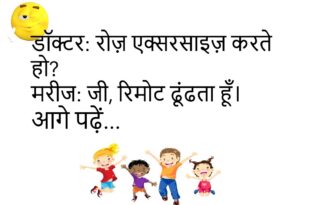 डॉक्टर बोले: एक्सरसाइज करते होमरीज बोला: रोज़डॉक्टर बोले: कौन सीमरीज बोला: करवट बदलना 😂 ******************************************** पत्नी बोली: सुन रहे होपति बोला: हाँपत्नी बोली: क्या कहापति बोला: यही कि हाँ 😆 ******************************************** टीचर बोले: सबसे तेज़ क्या हैछात्र बोला: इंटरनेटटीचर बोले: नहींछात्र बोला: छुट्टी की खबर 😂 ******************************************** दोस्त बोला: इतना टेंशन क्योंजवाब मिला: ज़िंदगी भारी हैदोस्त बोला: हल्का करोजवाब मिला: …