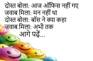 टीचर बोले: क्लास क्यों नहीं आएछात्र बोला: मन नहीं थाटीचर बोले: बीमारी थीछात्र बोला: आलस वाली 😜 ******************************************** दोस्त बोला: इतना खुश क्यों होजवाब मिला: वजह खास हैदोस्त बोला: क्याजवाब मिला: आज छुट्टी है 😄 ******************************************** बॉस बोला: प्रमोशन चाहिएकर्मचारी बोला: बहुतबॉस बोला: मेहनत करोकर्मचारी बोला: पहले सैलरी बढ़ाओ 😂 ******************************************** पत्नी बोली: खाना कैसा हैपति बोला: बहुत बढ़ियापत्नी बोली: …