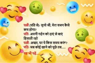 पति-पत्नी एक ही प्लेट में गोलगप्पे खा रहे थे एक दूसरे की आंख में आंख डाले पत्नी ने रोमांटिक हो कर पूछा- ऐसे क्या देख रहे हो जी? पति- थोडा आराम से खा, मेरी बारी ही नहीं आ रही…….😆🤣🤣🤣🤣😝😝😝 ************************************************************************************ पत्नी- कहां पर हो? पति- स्कूटर से गिर गया और एक्सीडेंट हो गया है, हॉस्पिटल जा रहा हूं पत्नी – …