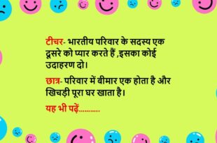 लड़का (लड़की से)- मैं उस लड़की से शादी करुंगा, जो मेहनती हो सादगी से रहती हो, घर को संवारकर रखती हो, आज्ञाकारी हो लड़की- मेरे घर आ जाना, ये सारे गुण मेरी नौकरानी में हैं….😆🤣🤣🤣🤣😝😝😝 ************************************************************************************ टीचर- लड़कियां अगर पराया धन होती है, तो लड़के क्या होते है? गप्पू- लड़के चोर होते है मैम टीचर- वो कैसे? गप्पू- क्योकि चोरों …