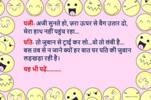 पप्पू नयी शर्ट पहनकर ऑफिस गया बॉस- वाह नयी शर्ट, तुमने खरीदी है क्या? पप्पू- नहीं सर, भैया ने गिफ्ट में दी है बॉस- ओह अच्छा, मुझे लगा सैलरी ज्यादा तो नहीं दे रहा……😆🤣🤣🤣🤣😝😝😝 ************************************************************************************ पत्नी के जन्मदिन पर पति ने पूछा- तुम्हे क्या गिफ्ट चाहिए? पत्नी की इच्छा नयी कार लेने की थी उसने घुमा-फिराकर कहा- मुझे ऐसी चीज …