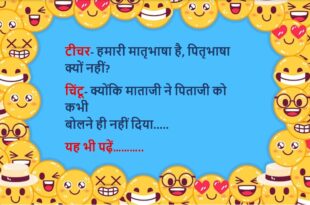 पुलिस- पड़ोसी की बीवी के गुम होने की रिपोर्ट, तुम क्यों लिखवा रहे हो? पप्पू- मैं उसकी खुशी बर्दाश्त नहीं कर पा रहा हूं, रोज पार्टी कर रहा है….😆🤣🤣🤣🤣😝😝😝 ************************************************************************************ टीचर- तुमने रामायण और महाभारत को देख कर क्या सीखा? चिंटू- महाभारत जमीन का केस है और रामायण अपहरण का टीचर बेहोश…..😆🤣🤣🤣🤣😝😝😝 ************************************************************************************ टीचर- बच्चों बताओ ताजमहल कहां है? छात्र- …
