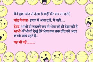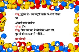 सुरेश एक शादी में गया, जहां जाकर उसकी आंखें नम हो गईं जब उसने एक नई नवेली बहू, मझली बहू और बड़ी बहू को घूंघट में देख कर बोला- वाह क्या संस्कार बाद में पता चला वे समय न मिलने के कारण ब्यूटी पार्लर नहीं जा पाईं थीं……😆🤣🤣🤣🤣😝😝😝 ************************************************************************************ एक आदमी की बीवी गुजर गई आदमी रोते हुए बोला- मुझे …