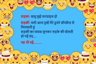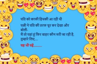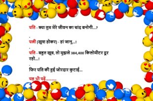 टीचर: बताओ, शादी क्या है?बच्चा: सर, वही जो नींद में भी जगा देती है!😊😊😊😊 ********************************************** पत्नी: मेरी उम्र कितनी लगती है?पति: कसम से, बताई हुई से ज़्यादा नहीं!😊😊😊😊 ********************************************** डॉक्टर: क्या समस्या है?मरीज: बीवी बात नहीं कर रही।डॉक्टर: बधाई हो, ये बीमारी नहीं, नेमत है।😊😊😊😊 ********************************************** पप्पू: मेरी गर्लफ्रेंड ने कहा– “Space दो!”गप्पू: फिर?पप्पू: मैंने NASA का link भेज दिया।😊😊😊😊 …