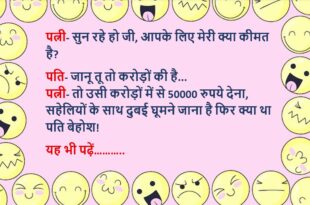 पत्नी ने पति का मोबाइल चेक किया, उसमें कुछ भी गलत नहीं मिला पत्नी सिर पकड़कर बोली- हे भगवान जिसे कोई भी घास नहीं डाल रहा है, मैं ऐसे आदमी के साथ जीवन गुजार रही हूं……😆🤣🤣🤣🤣😝😝😝 ************************************************************************************ पत्नी (पति से)- तुम चुकंदर खाया करो पति- क्यों? पत्नी- इसे खाने से खून अच्छा लाल और गाढ़ा होता है पति- अच्छा, अब …
