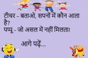 बच्चा – मम्मी, नींद नहीं आ रही! मम्मी – तो आँखें बंद कर ले और अपने रिजल्ट की सोच!😊😊😊😊 *********************************************** पप्पू – सर, मैं आज स्कूल नहीं आऊँगा! टीचर – क्यों? पप्पू – सर, ऑनलाइन क्लास का नेट खत्म हो गया!😊😊😊😊 *********************************************** बॉस – टाइम पर ऑफिस आओ! कर्मचारी – सर, रास्ते में वाई-फाई नहीं मिलता, इसलिए देर हो जाती …