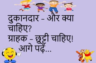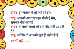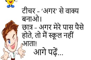 टीचर – तुम स्कूल देर से क्यों आए? छात्र – सपना पूरा कर रहा था, कि मैं टाइम से आया हूँ! ****************************************** बॉस – कल क्यों नहीं आए? कर्मचारी – सर, तबियत खराब थी। बॉस – कौन सी? कर्मचारी – ऑफिस जाने वाली! 😜 ****************************************** टीचर – बताओ 1 किलो लोहे और 1 किलो रूई में कौन भारी है? छात्र …