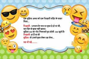 बाबा- तुझे क्या चाहिए? लड़का- खूबसूरत पत्नी बाबा- अगर तू हिन्दू है तो तुझे सोनाक्षी, मुस्लिम है तो कटरीना, सिख है तो अनुष्का और क्रिश्चियन है तो जेनेलिया, बोल तेरा नाम क्या है? लड़का- मोहम्मद विजय सिंह फर्नान्डिस बाबा बेहोश….😆🤣🤣🤣🤣😝😝😝 ************************************************************************************ पति- मैं तुमसे बहुत प्यार करता हूं पत्नी- तो क्या मैं आपसे प्यार नहीं करती? मैं तो आपके लिए …