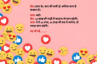 पंडित – ग्रह बहुत खराब चल रहे हैं! व्यक्ति – पर मोबाइल का नेटवर्क तो अच्छा चल रहा है! ****************************************** गली का बच्चा – अंकल, आपकी गाड़ी का साइलेंसर निकला हुआ है! अंकल – नहीं बेटा, बीवी गुस्से में बोल रही थी! 😅 ****************************************** पापा – बेटा, ये क्या पहन रखा है? बेटा – पापा, फैशन है! पापा – अरे, …