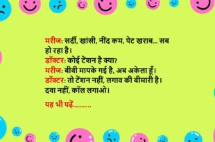 मरीज: डॉक्टर साहब, बीवी कहती है – “तुम कुछ नहीं कर सकते!” डॉक्टर: तो आप क्यों आए हैं मेरे पास? मरीज: कोई दवा दो, जिससे कम से कम डॉक्टर बन जाऊँ… थोड़ी इज़्ज़त मिल जाए!😆🤣🤣🤣🤣😝😝😝 ************************************************************************************ डॉक्टर: आप क्या भूलते हैं? मरीज: बीवी की बातें… और हर बार की माफ़ी! डॉक्टर: ये बीमारी नहीं, शादीशुदा जीवन की ट्रेनिंग है।😆🤣🤣🤣🤣😝😝😝 ************************************************************************************ …
