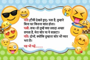 पत्नी: सुनो जी, मेरी उम्र क्या लगती है? पति: पच्चीस से ऊपर नहीं लगती। पत्नी: वाह, तुम तो बहुत अच्छे हो! पति (मुस्कुराते हुए): हाँ, जब से शादी की है तुम्हें, उम्र वहीं की वहीं ठहर गई है।😆🤣🤣🤣🤣😝😝😝 ************************************************************************************ पति: डार्लिंग, मैं तुम्हारे लिए क्या कर सकता हूँ? पत्नी: पहले तो ये बताओ, जब मैं कहूँ “मैं ठीक हूँ,” तो …