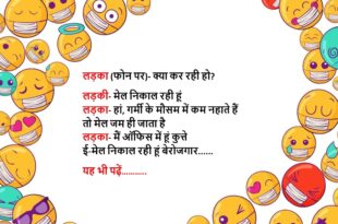 लड़की- तू जहां-जहां चलेगा मेरा साया साथ होगा लड़का- मुझे तो पहले ही लगता था कि तू भूतनी है……😆🤣🤣🤣🤣😝😝😝 ************************************************************************************ दो लड़कियां बस में सीट के लिए लड़ रही थीं कंडक्टर- अरे क्यों लड़ रही हो, जो उम्र में सबसे बड़ी है वो बैठ जाए फिर क्या, पूरे रास्ते दोनों खड़ी ही रहीं……😆🤣🤣🤣🤣😝😝😝 ************************************************************************************ मोहन (सोहन से)- यार पिताजी ने …