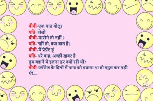 लड़की- तू जहां-जहां चलेगा मेरा साया साथ होगा लड़का- मुझे तो पहले ही लगता था कि तू भूतनी है……😆🤣🤣🤣🤣😝😝😝 ************************************************************************************* दो लड़कियां बस में सीट के लिए लड़ रही थीं कंडक्टर- अरे क्यों लड़ रही हो, जो उम्र में सबसे बड़ी है वो बैठ जाए फिर क्या, पूरे रास्ते दोनों खड़ी ही रहीं……😆🤣🤣🤣🤣😝😝😝 ************************************************************************************* मोहन (सोहन से)- यार पिताजी ने …