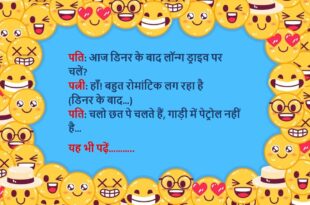 पति: जान, तुम हमेशा टीवी का रिमोट क्यों अपने पास रखती हो? पत्नी: ताकि तुम्हें पता रहे कि शादी में “कंट्रोल” किसके हाथ में है। पति: तो फिर टीवी भी मेरी जिंदगी की तरह साइलेंट मोड पर क्यों है?😆🤣🤣🤣🤣😝😝😝 ************************************************************************************ पति: जानू, तुम मुझसे कितना प्यार करती हो? पत्नी: इतना कि तुम्हारी हर गलती याद रखती हूँ… पति: वाह! ये …