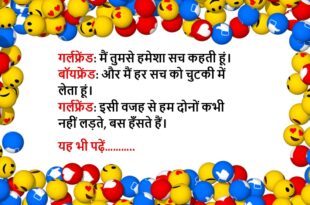गर्लफ्रेंड: तुम मुझसे झगड़ा क्यों करते हो? बॉयफ्रेंड: ताकि तुम्हें मना सकूं, वरना तुम्हें मना लेना सबसे आसान काम है। गर्लफ्रेंड: मतलब झगड़े के बाद प्यार और बढ़ जाता है? बॉयफ्रेंड: हां, क्योंकि झगड़ा तो सिर्फ बहाना है हमारी फीलिंग्स दिखाने का।😆🤣🤣🤣🤣😝😝😝 ************************************************************************************ गर्लफ्रेंड: तुम मेरे लिए क्या कर सकते हो? बॉयफ्रेंड: तुम्हारा मूड देखकर खुद को बदल सकता हूँ। …