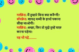 गर्लफ्रेंड: तुम मुझसे प्यार करते हो या नहीं? बॉयफ्रेंड: करता हूं, इसलिए तो तुम्हारे गुस्से में भी तुम्हें छोड़ता नहीं। गर्लफ्रेंड: मतलब तुम्हें मेरा गुस्सा भी पसंद है? बॉयफ्रेंड: हाँ, क्योंकि उसी में तो तुम्हारी असली परवाह दिखती है।😆🤣🤣🤣🤣😝😝😝 ************************************************************************************ बॉयफ्रेंड: तुम्हारी आँखें मेरे दिल की कहानी बताती हैं। गर्लफ्रेंड: फिर बताओ, मेरी आँखों में क्या है? बॉयफ्रेंड: ये बताना …