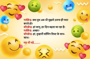 गर्लफ्रेंड: तुमने मेरा मैसेज पढ़ा और रिप्लाई नहीं किया? बॉयफ्रेंड: सॉरी जान, मैं ऑफिस में बहुत बिज़ी था। गर्लफ्रेंड: बिज़ी थे या फिर उस ‘Anjali_143’ की स्टोरी देख रहे थे? बॉयफ्रेंड: वो…वो तो गलती से क्लिक हो गया। गर्लफ्रेंड: अब गलती से तुम्हारी “शांति” भी चली जाएगी।😆🤣🤣🤣🤣😝😝😝 ************************************************************************************ गर्लफ्रेंड: चलो न आज बढ़िया डिनर पर चलते हैं। बॉयफ्रेंड: ठीक है, …