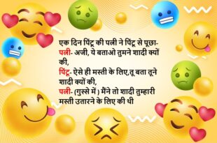 मेंढक पप्पू से- तुम्हारे पास दिमाग नाम की कोई चीज है क्या? पप्पू- है। मेंढक- नहीं है। पप्पू- अरे भाई, बोला ना है। मेंढक- नहीं है, नहीं है, नहीं है … और यह बोलते हुए मेंढक कुए मे छलांग लगा देता है। पप्पू- हे भगवान्, इसमें आत्महत्या करने वाली तो कोई बात नहीं थी।😆🤣🤣🤣🤣😝😝😝 **************************************************************************************** पिता- भारत की सबसे खतरनाक …