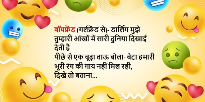 बॉयफ्रेंड (गर्लफ्रेंड से)- डार्लिंग मुझे तुम्हारी आंखों में सारी दुनिया दिखाई देती है
