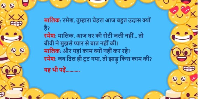 रमेश: मालिक, आज घर की रोटी जली नहीं… तो बीवी ने मुझसे प्यार से बात नहीं की।