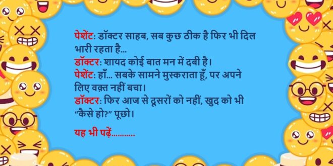 डॉक्टर: फिर आज से दूसरों को नहीं, खुद को भी “कैसे हो?” पूछो।😆🤣🤣🤣🤣😝😝😝