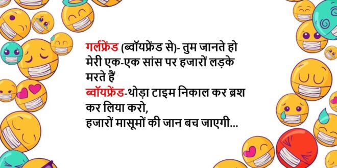 गर्लफ्रेंड (ब्वॉयफ्रेंड से)- तुम जानते हो मेरी एक-एक सांस पर हजारों लड़के मरते हैं