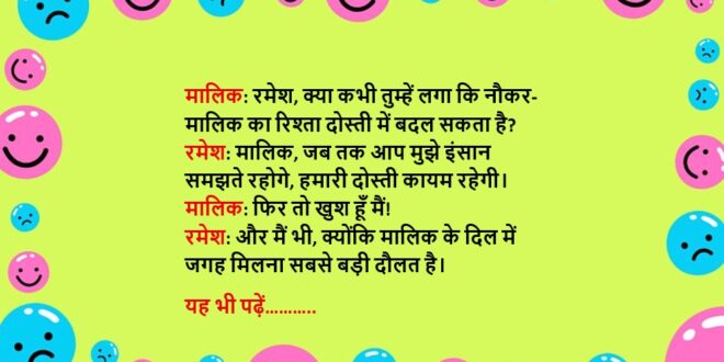 रमेश: मालिक, मैं तो आपको खुश रखने की कोशिश कर रहा था, क्योंकि खुश मालिक से ही खुश नौकर बनता है।